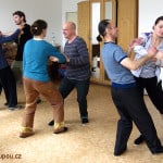 - Penglujian: klasické chyby a jak na ně reagovat – probrali jsme techniky bez kroků (např. přetočení ramen lze potrestat bojovou myšlenkou Loket; při chybném Roll backu často vzniká technika Ruce v oblacích)