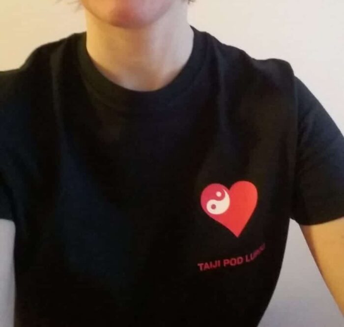 V roce 2025 je cena trika i s potiskem 380,- Kč. Obrázek tiskneme na univerzální černá trika s krátkým rukávem, 100% bavlna, gramáž 180. Trička jsou univerzální/pánská. Velikosti jsou jako pánské triko. Pro ženy to tedy vychází o číslo menší (například když běžně nosíte M, pak si objednejte spíše velikost S). Podívejte se na tabulku velikostí, podle toho můžete velikost dobře odhadnout. Zájemci o tričko napište Vlastě Pechové na info@taijipodlupou.cz.